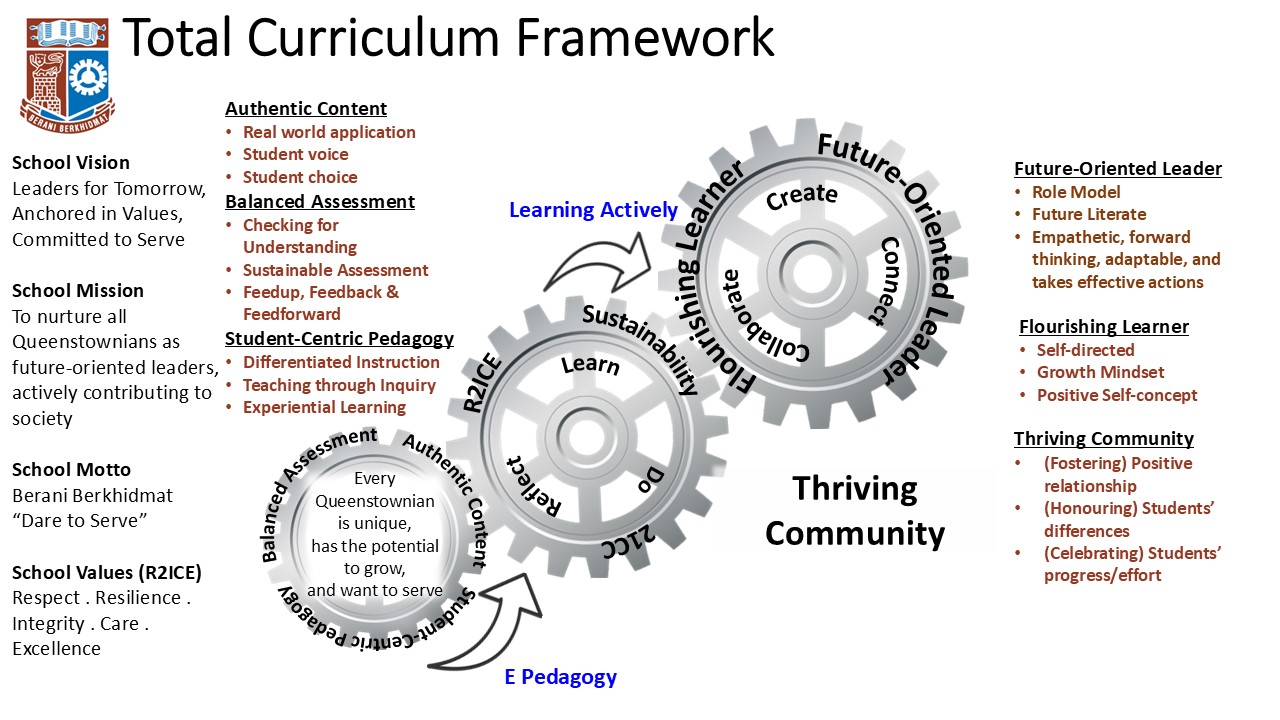The school adopts a school-wide teaching approach – authentic content, student-centric pedagogy and balanced assessment, enabled by the use of technology; to design learning experiences where every Queenstownian plays an active role in acquiring the school values (R2ICE), 21st Century Competencies and Sustainability Literacy through a Learn, Do, and Reflect cycle.